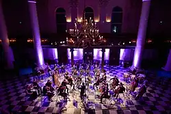 The Sinfonia Smith Square orchestra is formed of 34 graduate musicians, who are unpaid but receive an undisclosed bursary to take part.[3] Musicians are involved roughly 3 days a week for a 40 week period.[4] The orchestra collaborates with other artists and groups, including productions of Amadeus[5] and Every Good Boy Deserves Favour[6] at the National Theatre.