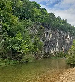Sinking Creek is one of the main features of Echo Bluff State Park, established in 2016. Park visitors often swim, wade, and float in the cool waters and swimming holes of the stream. The park's namesake is the Echo Bluff, which towers over the creek.