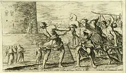William Shakespeare referred to Sinon on several occasions in his work, using him as a symbol of treachery.[9] For instance, in Cymbeline Imogen says to Pisanio, "True honest men being heard, like false Aeneas, / Were in his time thought false, and Sinon's weeping / Did scandal many a holy tear" (Act 3, Scene 4). In Henry VI Part III, the Duke of Gloucester says, "I'll play the orator as well as Nestor, / Deceive more slily than Ulysses could, / And, like a Sinon, take another Troy" (Act 3, Scene 2).
