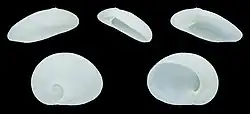 The maximum recorded shell length is 51 mm.[2] It has a shallowly coiled shell with a wide opening and graceful curved outline. It is white both outside and inside. Like the other members of its family, it is carnivorous.[3]