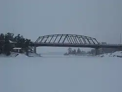 The Sioux Narrows Bridge is a bridge on Highway 71 at Sioux Narrows, Ontario, which spans the Sioux Narrows strait between Regina Bay and Whitefish Bay on Lake of the Woods.[1]