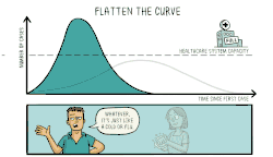 Wiles has been at the forefront of science communication in New Zealand during the COVID-19 pandemic.[23] With cartoonist Toby Morris Wiles created "Flatten the Curve", an animated GIF comic, for The Spinoff to describe how simple citizen actions could vastly reduce the death toll.[24] The comic went viral and was seen worldwide. Called "the defining chart of the coronavirus", it was based on earlier graphics by the Centers for Disease Control and Prevention, Rosamund Pearce of The Economist, and Thomas Jefferson University professor Drew Harris.[25][26]