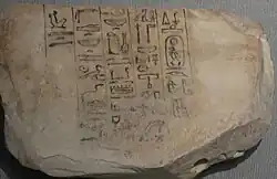 The ancient Egyptian noble Sitre In (or Sitra In, or Sit-re known as In or Inet, or simply Sitre) was buried in the Valley of the Kings, in tomb KV60. She has been identified as the nurse of Hatshepsut. A life-sized statue of her holding Hatshepsut is inscribed with her charge, which is repeated on an ostrakon now in Vienna.[1] Although not a member of the royal family, she received the honour of a burial in the royal necropolis. Her coffin has the inscription wr šdt nfrw nswt In, identifying her as the Great Royal Wet Nurse In.[2]