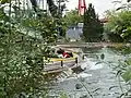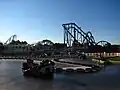Two new attractions were added in 1978. The park's first children's section, named Fort Fun, opened in the section designated the Yukon Territory.[28] Additionally, Great America's fourth roller coaster, Tidal Wave, a Schwarzkopf Shuttle Loop, opened in Yankee Harbor.[29] The Pictorium, an IMAX theatre, opened in 1979, and claimed to have the world's largest screen, at 64.5 by 88.25 feet (19.6 × 26.9 meters).[30]