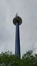 The park's second season in 1977 saw the installation of several new rides. The 285-foot-tall (87 m) Sky Trek Tower was built, offering views of the park, Lake Michigan, and the Chicago skyline.[25] A third gondola sky ride, Southern Cross, was added, which offered a round trip and a higher view than the other two gondola rides. A few new spinning rides were added, such as Big Top, Davy Jones' Dinghies, and Hay Baler.[26] The Gulf Coaster was removed for the 1977 season.[27]