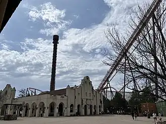 In April 2024, the park demolished its old entrance plaza to build a new entrance building.[190] Sky Striker opened to the public in mid-June.[191] Two months later, a B&M Dive Coaster named Wrath of Rakshasa was announced on August 15, 2024. It would be the steepest and feature the most inversions on a Dive Coaster, and would replace the Buccaneer Battle water ride.[192] In early November 2024, it was announced in a press release that Six Flags Great America would receive a new kids area, alongside 50th anniversary celebrations, and park enhancements, as part of the newly merged Six Flags' $525 million investments for the 2026 season.[193][194][195] Wrath of Rakshasa debuted to the public on May 31, 2025, becoming the park's 16th roller coaster.[196]