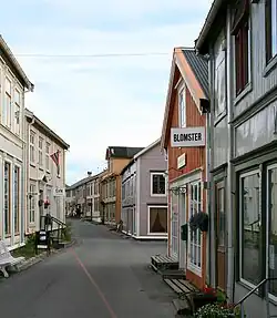 Sjøgata (lit. 'Sea Street') is a historic and picturesque area running along the mouth of the river Vefsna in the town of Mosjøen which is located in Vefsn Municipality. It lies in the traditional district of Helgeland in Nordland county, Norway. Sjøgata, with the largest concentration of listed wooden buildings in northern Norway, is a popular tourist site. Sjøgata is an area of piers, storehouses, boathouses, a number of galleries and several restaurants, together with the Vefsn museum and Kulturverkstedet, a culture workshop with exhibitions. Sjøgata has been awarded the St. Olav Rose, the Norwegian Heritage Seal of Quality. Fru Haugans Hotel, located on the end of Sjøgata, is the oldest hotel in North Norway dating back to a former trading post established in 1794.[1]