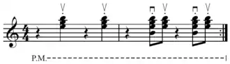 Ska strokes create a bouncing rhythm, going up then down in pitch.[5] Played in 4