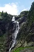 The Skakavitsa Waterfall (Bulgarian: Скакавица or Скакавишки водопад, Skakavishki vodopad) is the highest waterfall in the Rila Mountains in Bulgaria. It is part of Rila National Park and is located on the Skakavitsa River. The waterfall is situated on approximately 2,000 m above sea level, the water falling down from 70 m.