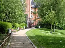 Skanseparken (lit. The Sconce Park) is one of the oldest parks in the city of Aarhus. It is situated in the neighborhood of Frederiksbjerg in Midtbyen. Skanseparken was constructed in the years 1901 to 1902 between the streets Strandvejen, Marselisborg Allé and Heibergsgade. The park is typical of the parks in the city with large, open areas bounded by beech trees, raised flower beds and playgrounds. It is a popular area for festivals, concerts and other cultural events.[2]
