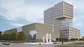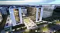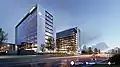 The first stage of development involves building a twin-tower 11-storey office building with a total floor area of 28,000 m2 (300,000 sq ft) and parking for 440 cars. The first building is scheduled to be finished in 2020, the second in 2023, and the whole quarter by 2030.[36]