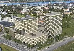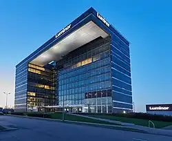 AS Rietumu Banka is one of the largest banks in the Baltic region, specializing in servicing large businesses and wealthy individuals.[17] Rietumu Capital Centre, the central offices of AS Rietumu Banka, is one of the most modern business centers in the Baltics, for which the architectural firm Zenico projekts received the Riga Architecture Annual Prize 2010. This multi-storey building is the first A+++ class office complex in Latvia. Rietumu Capital Centre is formed by three interconnected towers of different heights and a multi-level parking garage. The roof of the building has a helicopter pad and a wide terrace with a garden.[18]
