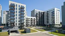 By now, three residential complexes have been completed: Skanstes virsotnes, Skanstes mājas, and Skanstes Parks.[33] With the area developing, a number of apartments will be built in Skanste.