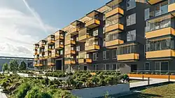 Skanstes Mājas is a residential complex located next to Skanstes Virsotnes. It consists of three separate buildings with apartments, whose footage varies from 50 to 150 m2 (540 to 1,610 sq ft). Developer and general contractor: construction company Merks, Latvia.[27]