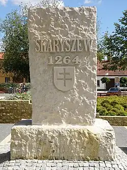 First documented mention of Skaryszew comes from the year 1198, when the village belonged to the Abbey of Order of the Holy Sepulchre, located at Miechów. The monks opened here a branch of their abbey, and probably in the late 12th century, a wooden church of St. Jacob was built, together with a house for the monks. Due to the efforts of the Order of the Holy Sepulchre, merchants and skilled artisans were attracted to the quickly growing village. Skaryszew was destroyed in the Mongol invasion of Poland, and soon afterwards, Duke of Kraków and Sandomierz Bolesław V the Chaste granted the village the so-called Środa Śląska town charter, based on the charter of Nowy Korczyn (see also Magdeburg rights). The charter was confirmed by King Casimir III the Great in 1354.