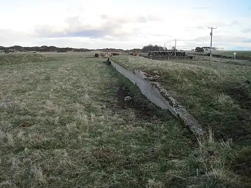 The station closed on 13 June 1960. The track of the Dornoch Light Railway was lifted during the spring and summer of 1962. A diesel engine assisted in the removal of the line and was to remain in the siding at Skelbo Halt until it was removed by road in the early August of that year.[5] The waiting shelter from Skelbo station still survives but is now located in a field to the west at Cambusmore. The station platform still survives, together with two of the level-crossing gate posts and the cutting to the north of the gate keeper's cottage, which is now a private dwelling.