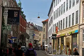 Skindergade is a street in central Copenhagen, Denmark. Running roughly parallel to Strøget, to which it is connected through Jorcks Passage, it extends for approximately 400 metres from Gammeltorv to Købmagergade.