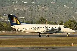 Skippers Aviation is an Australian regional airline based out of Perth Airport that specialises in charter flights for companies with fly-in fly-out workers. It also operate flights for the mining industry in Western Australia, as well as some scheduled regular public transport flights. Primarily serving the northern Goldfields, Skippers also has a secondary base in Broome in order to service the Kimberley region.