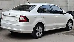 In October 2011, Škoda resurrected the Rapid nameplate for a rebadged version of the Volkswagen Vento, also made in India, with sales starting in November.[1] The Rapid features a similar rear end design with the Vento, except for the taillights, but shares the front end design with the second-generation Škoda Fabia,[2] to which however it is not directly related, the Rapid being based on the newer PQ25 platform of the Volkswagen Group.[3] The car is produced by Indian subsidiary Škoda Auto India Private Limited in Pune.