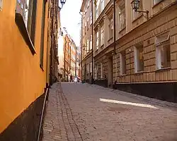 - ^ a b "Innerstaden: Gamla stan". Stockholms gatunamn (2nd ed.). Stockholm: Kommittén för Stockholmsforskning. 1992. p. 70. ISBN 91-7031-042-4.