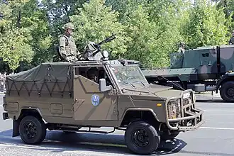 80 of Skorpion-3 were used by Polish contingent in Iraq.[6] In addition, in September 2006, a dozen or so unarmoured vehicles of this type were handed over to the Iraqi side. These vehicles were heavily used, so before being handed over, they were overhauled by the MND CS repair platoon. The vehicles were delivered to Iraqi gendarmerie units.[7]