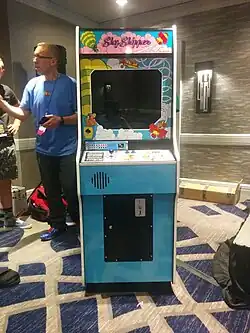 In 2016, a group of arcade restoration enthusiasts decided to build a restored Sky Skipper cabinet.[20] No complete cabinets were known to exist in private collections. Four boards owned by collectors, containing Popeye ROMs, were known to have been converted from Sky Skipper based on their serial numbers.[15][21] Using ROM images available online,[15] they converted a board to Sky Skipper.[7] To get information on the cabinet, they asked video game player Billy Mitchell to connect with Nintendo of America.[7] Nintendo said they still had a Sky Skipper cabinet[7] and granted them access to examine it.[11] With the scans they took, and sourcing one of the four known boards, they were able to create a recreation of the arcade game in Nintendo of America's archives.[21]