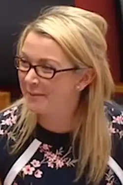 Skye Louise Kakoschke-Moore (born 19 December 1985) is an Australian politician who was a Senator for South Australia in the Parliament of Australia from July 2016 until she resigned in November 2017 during the parliamentary eligibility crisis, following her realisation that she was a dual citizen.[2] Kakoschke-Moore had served as Nick Xenophon Team whip and spokesperson for mental health, disability, Indigenous affairs, veteran's affairs, women, arts and sports. She was also the social services spokeswoman for the party in the Senate.[3][4]
