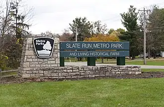 Slate Run Metro Park is a public park and nature preserve in Madison Township in Pickaway County, Ohio. The park is managed by the Columbus and Franklin County Metro Parks in the Columbus metropolitan area. The park features numerous trails through grasslands, wetlands, forests, and meadows. The park's main water feature is Buzzard's Roost Lake, while nearby Slate Run Creek passes through the park. Amenities include picnic areas and shelters, boardwalks and fishing docks, and several sets of play equipment.[2]