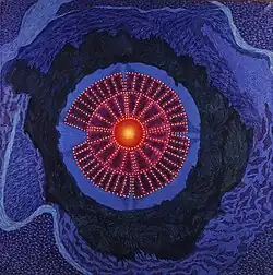 Three morphologies of Rodnover eschatology have been observed; gnosiological, apocalyptic, and cosmological: the first, proposed by S. M. Telegin in his 2014 book The Rise of Myth, tells of a general awakening of the consciousness of mankind, of a "coming revolt of the healthy natural principle rooted in mankind against the Christian religion and the technocratic civilisation generated by it", a reawakening of the gods in men and therefore the re-establishment of mankind's dominance over the cosmos;[85] the second, expounded in the Slavo-Aryan Vedas of Ynglism, is apocalyptic, telling about a series of coming events and the end of the world determined by higher powers and independent from human will;[86] the third, based on the cosmology elaborated by N. V. Levashov (1961–2012), Levashovism, tells that there are so-called "Days of Svarog" (periods of harmony and evolution influenced by Bright Forces) and "Nights of Svarog" (periods of disorder and degeneration influenced by Dark Forces) in both time and space, and they are determined by different balances of the "seven primary matters" of which everything is made, in turn determined by the movements of the Solar System in the Milky Way galaxy.[87]