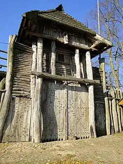 Slavic Village Passentin (German: Slawendorf Passentin) is an archaeological open-air museum located in the destination of Passentin in the land of Mecklenburg-Vorpommern in Germany. The museum is a research and educational establishment specializing in cultural and rural history. The main purpose of the work is dissemination of cultural and historical knowledge, to encourages the visitors to explore their roots, their own ethnic and cultural heritage. For a few hours or some days here school classes and families able to live and acted as the Slavs in the Early Middle Ages: sleep, prepare food and even weaving, spinning, pottery, carving, forging.