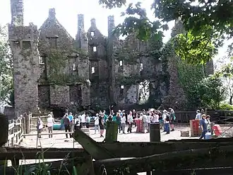 Sleady Castle has hundreds of visitors in a typical year. Joanne is often there to welcome them and talk about the history of the Castle. It has become a destination for McGrath Clan members. The attached photo was taken in 2019 during a McGrath Clan Gathering tour of the Castle, where Joanne gave a tour and a talked about the Castle's history.[6] She has also undertaken a refurbishment of the grounds surrounding the ruins to enhance the visitor experience. This initiative is called Sleady 400 to mark the 400th anniversary of the Castle in 2028. The project is supported by The United States McCraw Family Association.[7][8]