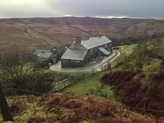 In 1829 Sleddale Hall was recorded as: "Sleddale Hall, now a farm-house belonging to C. Wilson, Esq., was long the seat of the ancient family of Sleddale, one of whom was the first Mayor of Kendal, and possessed Gillthwaite-Rigg, and some other estates."[5] The Wet Sleddale Reservoir was built below the Hall some time in the 1960s to provide water for Manchester, flooding a small part of the dale. By the time of the filming of Withnail and I in 1986, Sleddale Hall was derelict.[6]