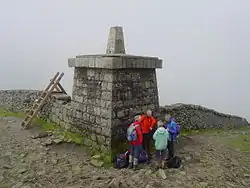 In 1826, as part of the Principal Triangulation, the Royal Engineers used Slieve Donard as a base to map Ireland. They camped on the mountaintop from late July until late November that year and used the two cairns to make triangulation points, badly damaging the cairns.[31] During the Survey, two men died in a snowstorm on their way down the mountain and others were hurt during storms on the summit.[32]