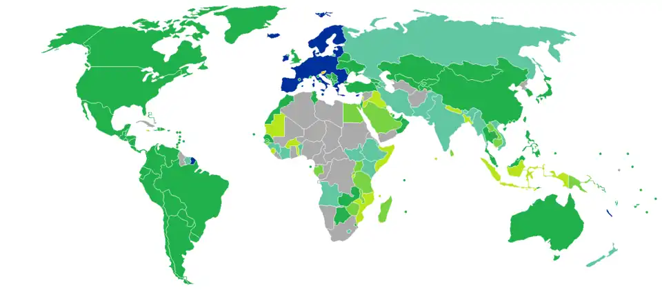 The Slovenian passport generally ranks high in various metrics such as accessibility and mobility. Slovenian citizens had visa-free or visa-on-arrival access to 183 countries and territories, ranking the Slovenian passport ninth overall in terms of travel freedom (tied with the Croatian, Latvian, and Slovak passports) and the highest ranking of the former Yugoslavian states, according to the 2025 Henley Passport Index.[10] Arton Capital's Passport Index ranked Slovenia's passport sixth in the world in terms of travel freedom, with a visa-free score of 116 (tied with Latvia and New Zealand), as of June 2025.[11]