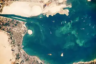 The Great Bitter Lake (Arabic: البحيرة المرة الكبرى; transliterated: al-Buḥayrah al-Murra al-Kubrā) is a large saltwater lake in Egypt which is part of the Suez Canal. Before the canal was built in 1869, the Great Bitter Lake was a dry salt valley or basin.[1][2] References are made to the Great Bitter Lake in the ancient Pyramid Texts.[3]