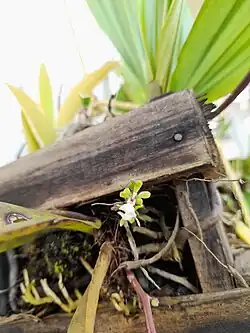 Smithsonia viridiflora, commonly known as the green smithsonia, is an epiphytic orchid native to the Western Ghats of Karnataka and Maharashtra.[1] It is 3–10 cm (1.2–3.9 in) long with light fluorescent green color petals and a distinguishable lip like other Smithsonia species.[2]