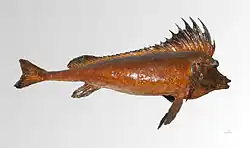 - ^ Christopher Scharpf & Kenneth J. Lazara, eds. (10 March 2022). "Order Perciformes (Part 10): Suborder Scorpaenoidei: Families Apistidae, Tetrarogidae, Synanceiidae, Aploacrinidae, Perryenidae, Eschmeyeridae, Pataecidae, Gnathanacanthidae, Congiopodidae and Zanclorhynchidae". The ETYFish Project Fish Name Etymology Database. Christopher Scharpf and Kenneth J. Lazara. Retrieved 19 May 2022.
