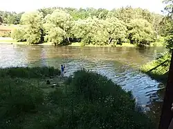 There are 507 bodies of water in the basin area. A system of fishponds in built on the upper course of the river. The largest of them and the largest body of water in the entire basin area is Velká Kaplice with an area of 22.9 ha (57 acres). The fishpond Chobot with an area of 19.2 ha (47 acres) is built on the middle course of the river.[2]