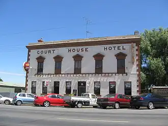 Facilities in the town include the Court House Hotel, a bluestone police lock up, constructed in 1869 and the old Court House, now home to the local historical society. The former courthouse closed on 1 January 1983 after having not been visited by a Magistrate since 1976, was briefly used as a Sunday school, and was then leased to the historical society in 1985.[3][4]
