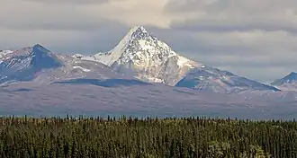 Snider Peak is an 8,250-foot (2,515 meter) dacitic dome summit located in the Wrangell Mountains, in the U.S. state of Alaska. The peak is situated in Wrangell-St. Elias National Park and Preserve, 30 mi (48 km) east of Glennallen, and 3 mi (5 km) south of Mount Drum which is the nearest higher peak. Precipitation runoff from the mountain drains into the Dadina and Nadina Rivers which are both tributaries of the Copper River. The peak's name may have been the name of an early prospector as reported in 1903 by the US Geological Survey.[2]