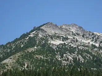 Snoqualmie Mountain is the tallest peak in the immediate vicinity of Snoqualmie Pass in the North Cascade Range of Washington state, U.S. Its shape is often described as "amorphous" or "blob-like", although it does display a steep north face dropping down to the Middle Fork of the Snoqualmie River. The boundary of the Alpine Lakes Wilderness crosses the summit of Snoqualmie Mountain.