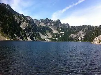 Snow Lake is located in King County, Washington. The lake is the "most visited lake in the Alpine Lakes Wilderness."[1] The lake is also stocked with rainbow trout for fishing.[2]