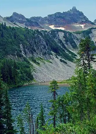 Snow Lake is a lake in Lewis County, Washington. It is within Mount Rainier National Park. It is in a glacial cirque below Unicorn Peak, in the Tatoosh Range. It also has a hiking trail, spanning about seven miles.