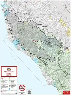 - ^ "Soberanes Fire map". InciWeb Incident Information System. National Wildfire Coordinating Group. Retrieved August 6, 2016.