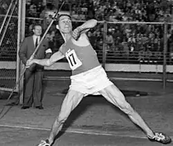 Soini Mikael Nikkinen (19 July 1923 – 2 June 2012) was a Finnish javelin thrower who won a bronze medal at the 1954 European Championships.[3] He placed 12th and 8th at the 1948 and 1952 Summer Olympics, respectively.[1] On 24 June 1956, he set a new world record at 83.56 m, which was beaten six days later by Janusz Sidło.[2]