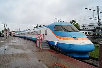 The Sokol project was cancelled in 2002.[3] Instead of a Sokol-based design, high speed trainsets (named Sapsan) based on the Siemens Velaro were procured from Siemens in Germany.[4] The Sapsan trains have been operating on the Moscow–St. Petersburg line since December 2009.