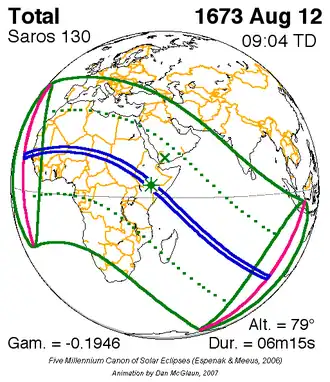 - ^ a b "Solar eclipse of August 12, 1673". NASA. Retrieved March 18, 2017.