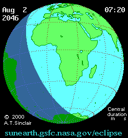 - ^ "Total Solar Eclipse of 2046 Aug 02". EclipseWise.com. Retrieved 15 August 2024.