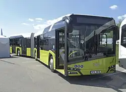 Solaris Urbino 18 is a low-floor articulated version of the Solaris Urbino series buses designed for public transport, produced by the Polish company Solaris Bus & Coach from Bolechowo near Poznań in Poland.[2] It is the second most popular (after the Solaris Urbino 12) Solaris model in terms of the number of units sold. Since 2005, the third generation of the Urbino 18 is produced. In addition to the basic model, which is powered by a diesel engine which meets the Euro V emission standard, there are versions produced to meet the EEV and fueled with CNG or the second generation hybrid bus model.[3]