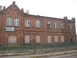 The sub-camp known as the Iłowo transit camp existed in 1941–45. Prisoners were held at a brick building (pictured) and the adjacent barracks in Iłowo.[16] Up to 2,000 Polish children five years old and younger were among the prisoners as well as pregnant women-inmates awaiting birth. The men, including Poles and the Soviets (following Operation Barbarossa), were kept there usually for several days only before transfer. Many of the children belonged to slave labourers who were already deported to the Third Reich. The children underwent selections for Germanization and were being sent to German families. Among those who were not selected death rate was very high. There were no medicines in the camp and no doctors. The food and water were rationed. After giving birth the women prisoners were sent back to other work camps.[17][18]